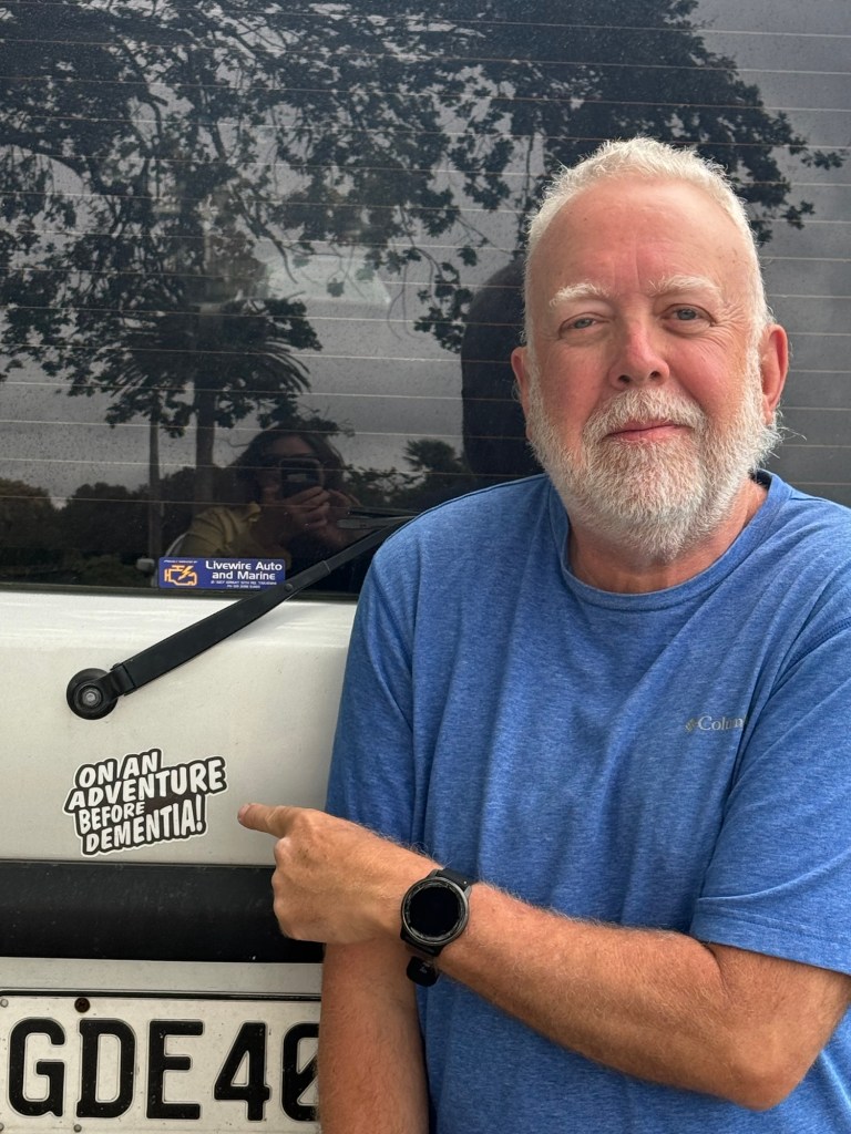 I knew this was the right vehicle when I saw the bumper sticker: “On an Adventure Before Dementia”